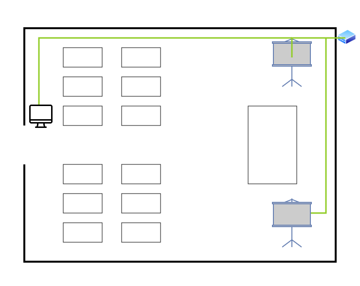Do you need to connect a lot of screens or speakers over a large distance? Then make use of our network. By using the network, you avoid the need to run several cables to each device.